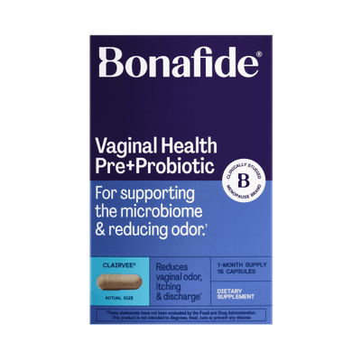 Clairvee® is a vaginal pre+probiotic that’s clinically tested to reduce vaginal odor, itching, and discharge in as little as 15 days.