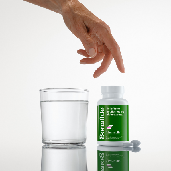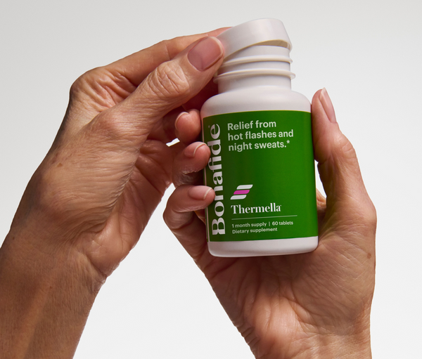 A first-of-its-kind solution that targets hot flashes & night sweats at the source, Thermella blocks NKB—a peptide that tells our body to heat up—for fast cooling relief.*