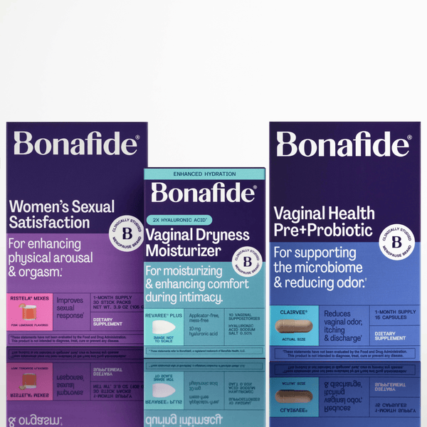 Meet the Rebalancing Intimacy System, featuring Ristela® Mixes, Clairvee®, and Revaree® Plus—three hormone-free solutions that work together to enhance your sex life.*