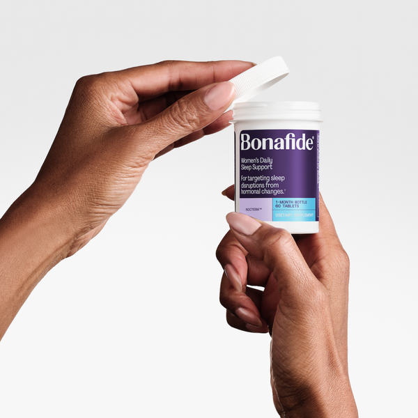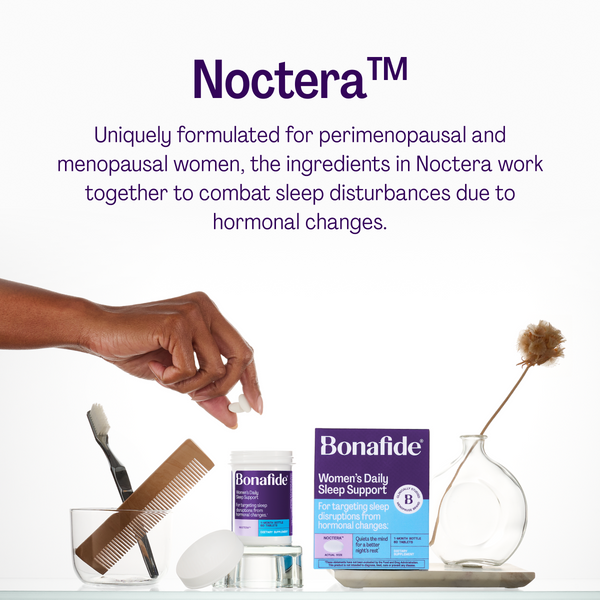 Noctera is a hormone-free, non-sedative sleep supplement with a continuous-release, non-groggy formula. It combines GABA, L-theanine, magnesium glycinate, and SAMe—each carefully selected to help rebalance hormonal signals that disrupt sleep patterns and to calm the mind for a better night's rest.
