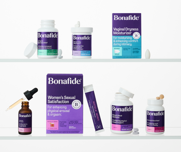 Meet the Pleasure + Dryness System, featuring Ristela® Mixes and Revaree® Plus—two hormone-free solutions that work together to increase sexual satisfaction* and provide extra-strength relief from vaginal dryness and pain during intimacy.