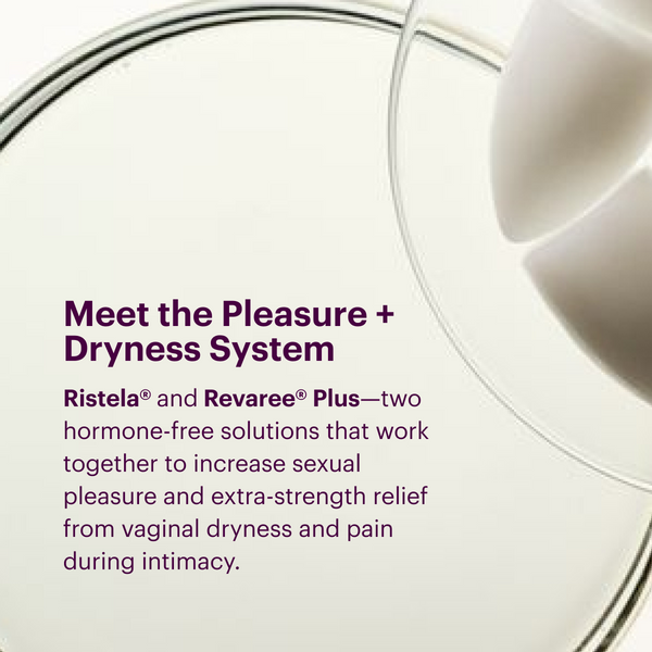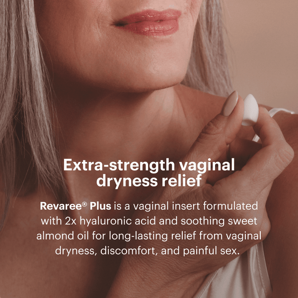 - Revaree Plus is intended for any woman experiencing vaginal dryness or pain during intimacy. Vaginal dryness is a common side effect of menopause due to fluctuating estrogen levels. Revaree Plus has been shown to safely relieve vaginal dryness and pain during intimacy in women across multiple clinical studies.5,7