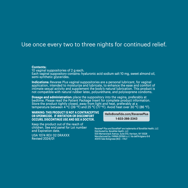 Reviews represent individual experiences and may not reflect clinical results. Individual results may vary. Revaree Plus is a personal lubricant for vaginal application, intended to moisturize and lubricate to supplement the body's natural lubrication.