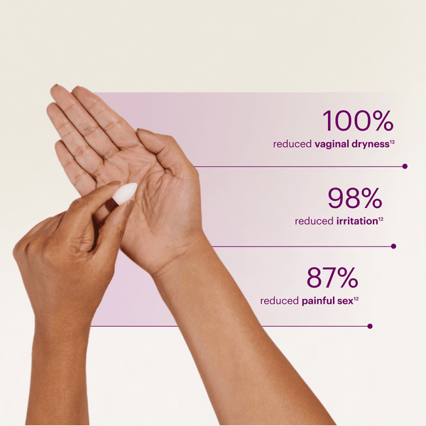 During menopause, the vagina loses collagen and its water-retaining ability. Revaree Plus counteracts these effects with hyaluronic acid, a naturally occurring molecule that holds 1,000x its weight in water, as well as sweet almond oil, a nutrient-rich moisturizer that prevents the loss of hydration. Together, these ingredients soften and soothe the skin while restoring natural hydration. 3,4,5 - Is Revaree Plus right for me?