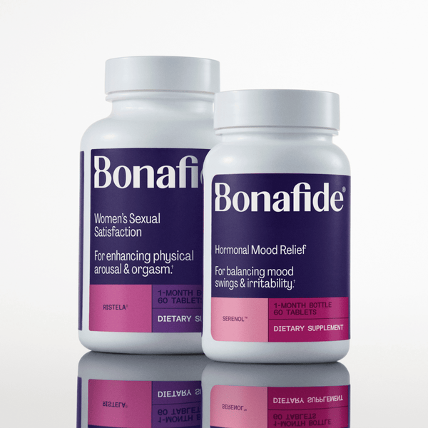 Meet the Mood Swing + Pleasure System, featuring Serenol™ and Ristela®—two hormone-free solutions that work together to decrease hormonal mood swings and increase sexual satisfaction.*