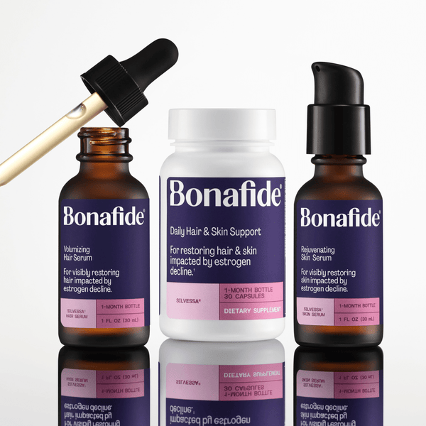 Silvessa™ is the first comprehensive system designed to restore and protect hair and skin affected by estrogen decline - from the inside and out.*