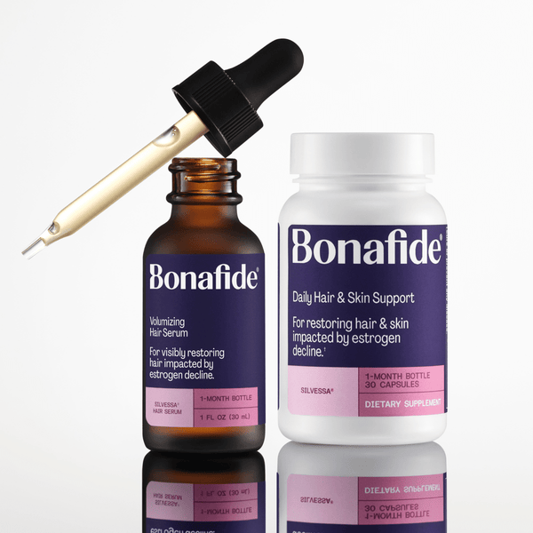 Silvessa™ is the first comprehensive system designed to restore and protect hair and skin affected by estrogen decline - from the inside and out.*