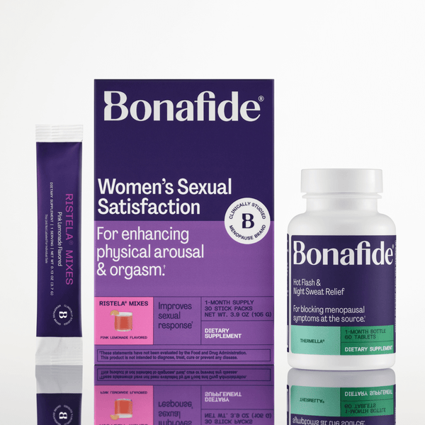 Meet the Hot Flash + Pleasure System, featuring Thermella® and Ristela® Mixes—two hormone-free solutions that work together to decrease menopausal hot flashes and increase sexual satisfaction.*
