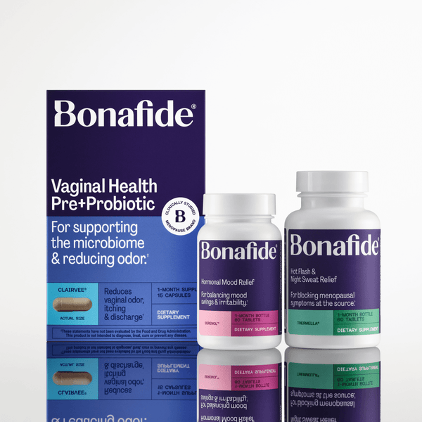 Meet the Perimenopause System, featuring Thermella®, Serenol™, and Clairvee®—three hormone-free solutions that work together to restore balance to your body’s temperature, mood, and vaginal microbiome.*